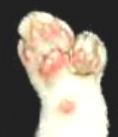 The back paws are only affected if the front paws are also affected. Unlike the front paws, there are not usually distinct "thumbs". |